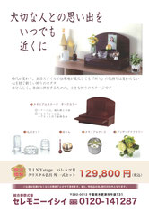 セレモニーイシイでは、お位牌・お仏壇をお取り扱いしております。 故人様との思い出を大切に、日々の暮らしに溶け込むご供養のかたちをご提案しています。